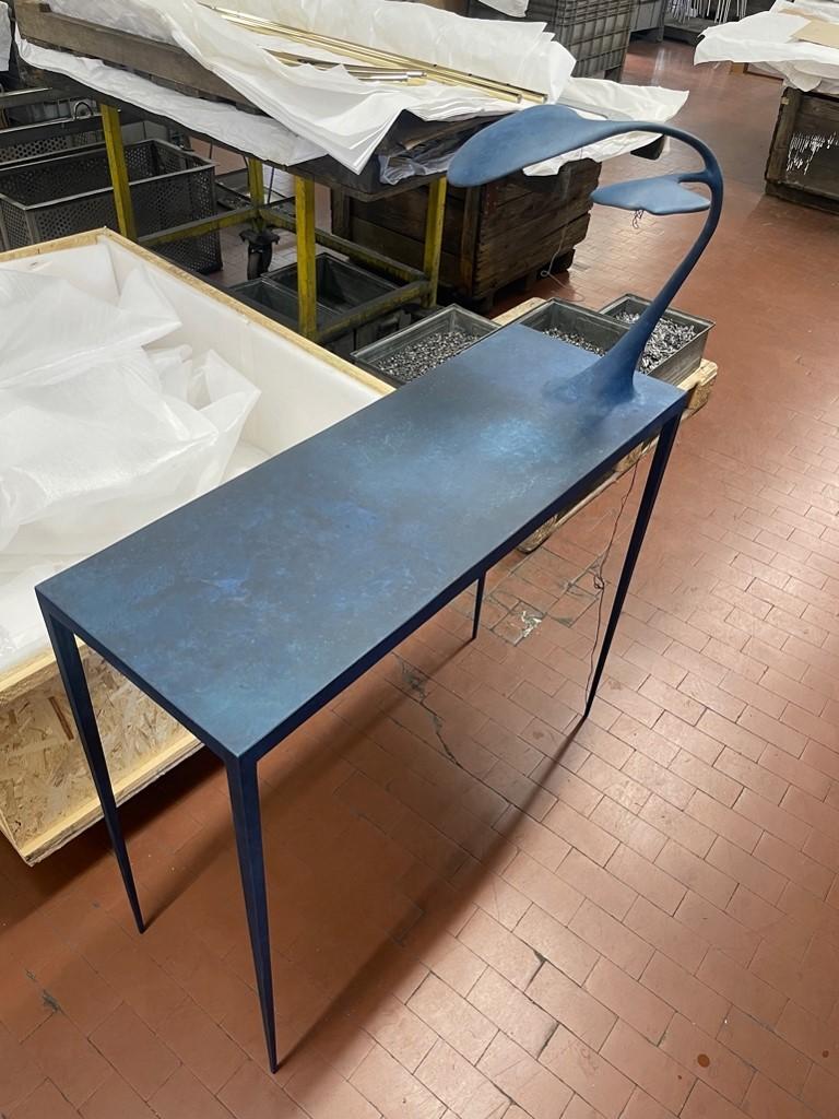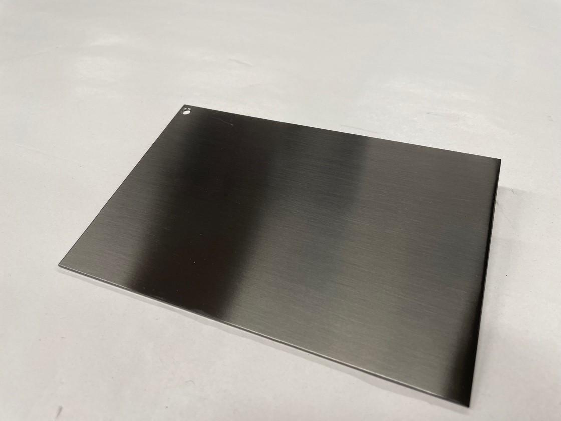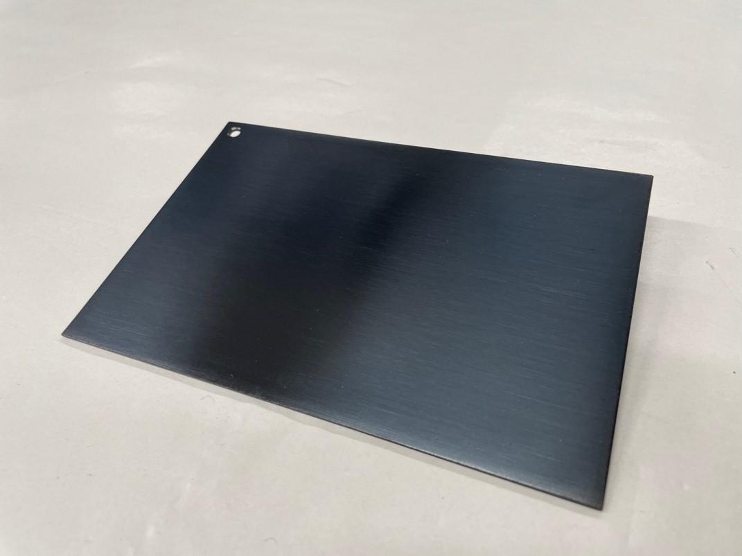 Anche detto “blue metal”, è la deposizione di uno strato superficiale di colore blu scuro e intenso, spazzolato per creare un effetto “semi-lucido" che risulta di grande eleganza.