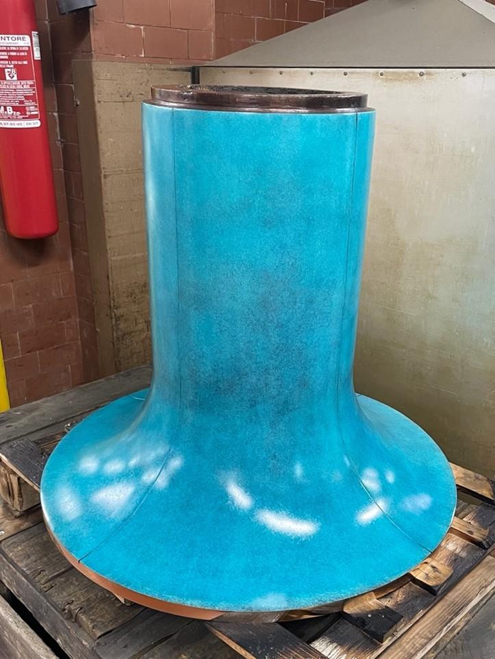 Anche detto brunito sfumato, è la deposizione di una patina blu/nera, che viene sfumata a mano per fare risaltare il fondo rosa del rame, donandovi un gradevole effetto anticato.
